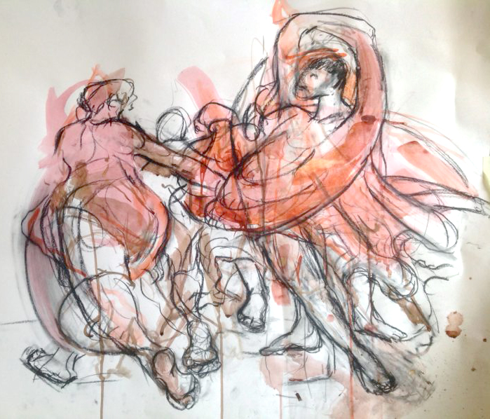 Dancers 1Charcoal and Watercolour